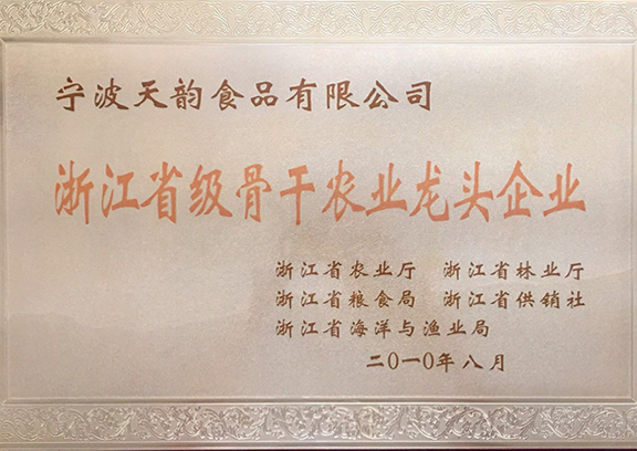 寧波天韻公司被評為農(nóng)業(yè)產(chǎn)業(yè)化國家重點(diǎn)龍頭企業(yè)