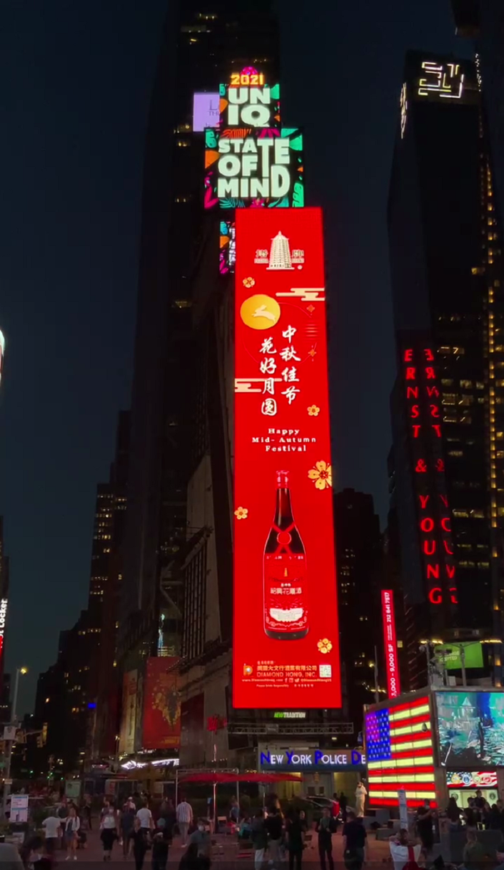 中秋節(jié)期間,“塔牌——中秋佳節(jié),花好月圓”的大型條幅在美國紐約時(shí)代廣場的大屏幕上亮相,向全球華人獻(xiàn)上中秋的祝福。
